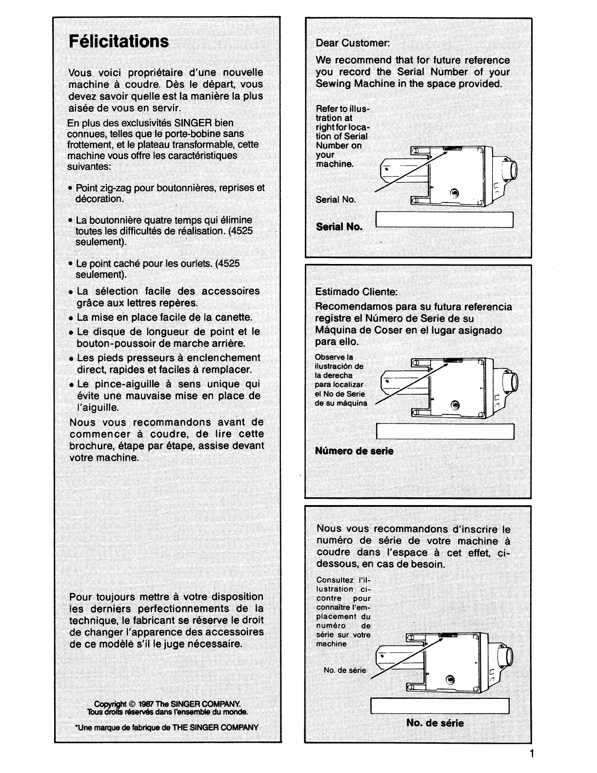 Singer 6212 - Customer Reference Information; Record Serial Number