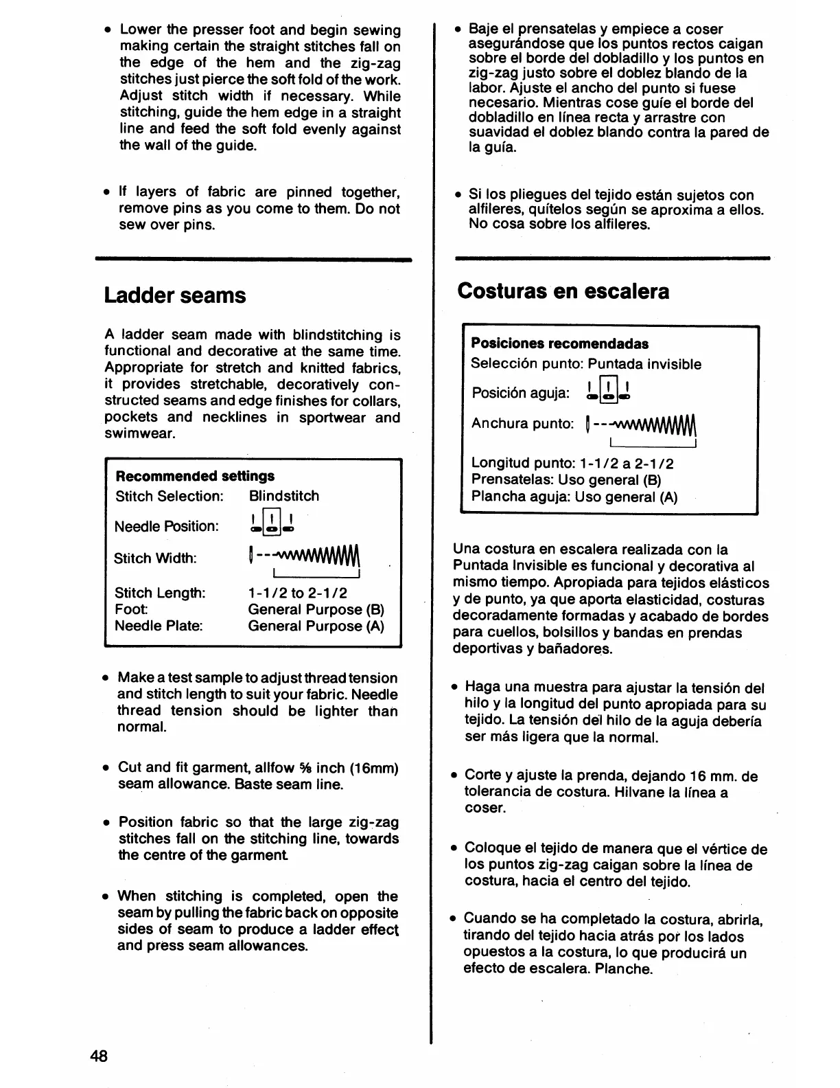 Singer 6212 - Ladder Seams; Ladder Seam Settings