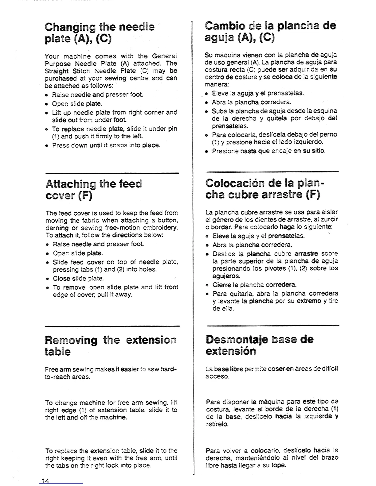 Singer 6214 - Changing Machine Parts; Changing the Needle Plate; Attaching the Feed Cover; Removing the Extension Table