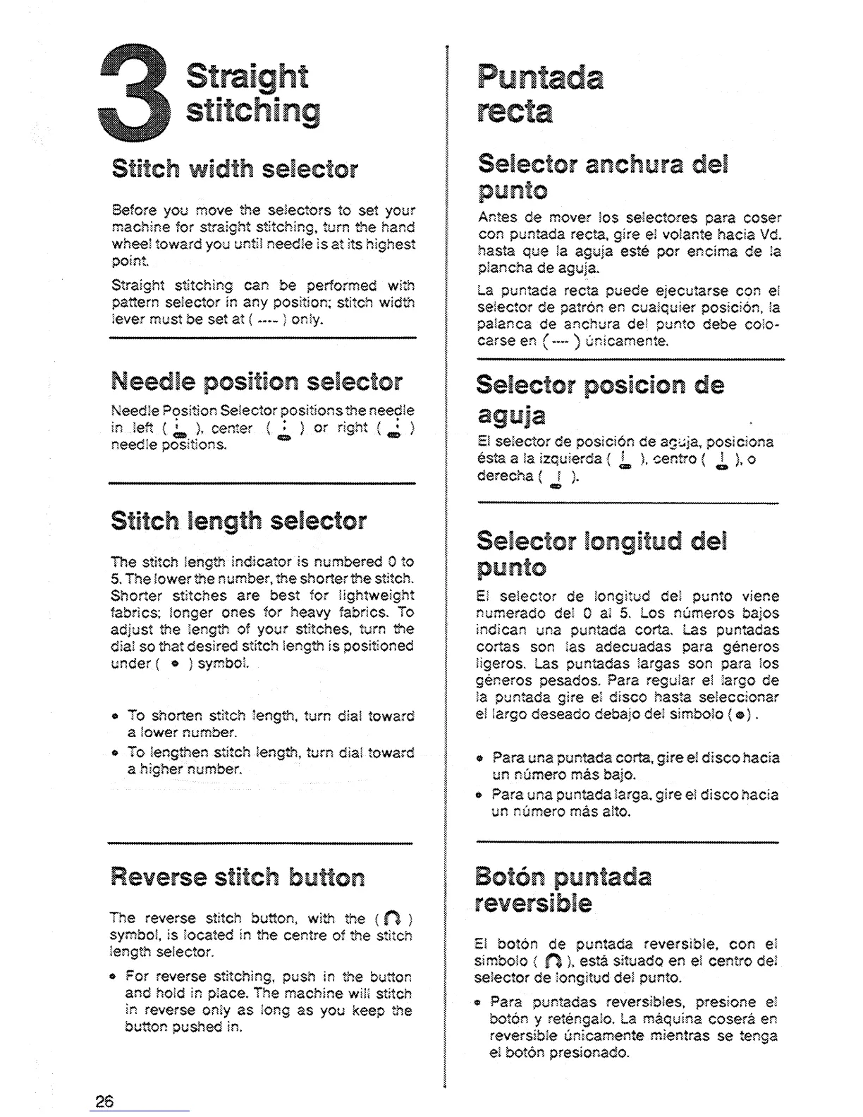 Singer 6214 - Straight Stitching; Stitch Width Selector; Needle Position Selector; Stitch Length Selector