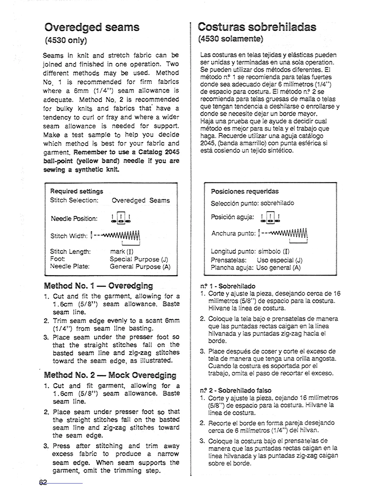Singer 6214 - Overedged Seams; Method No. 1 - Overedging; Method No. 2 - Mock Overedging