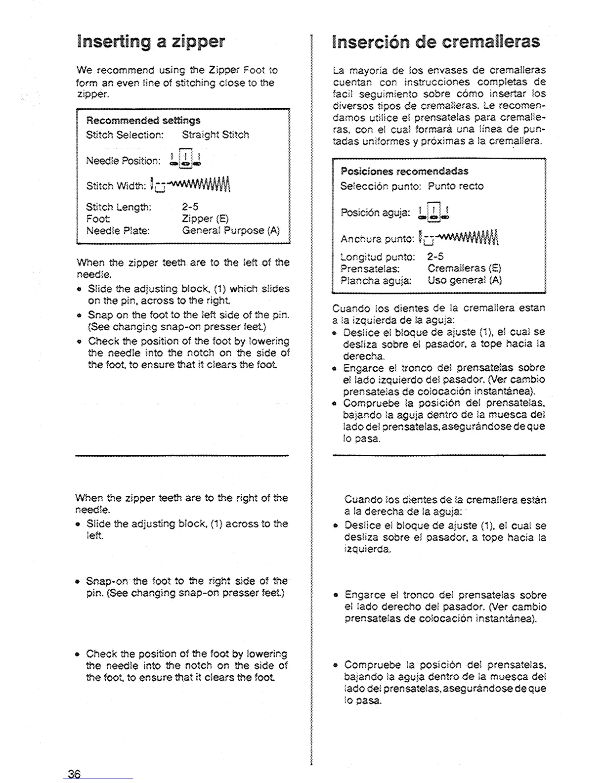 Singer 6215 - Inserting a Zipper; Zipper Insertion Guide