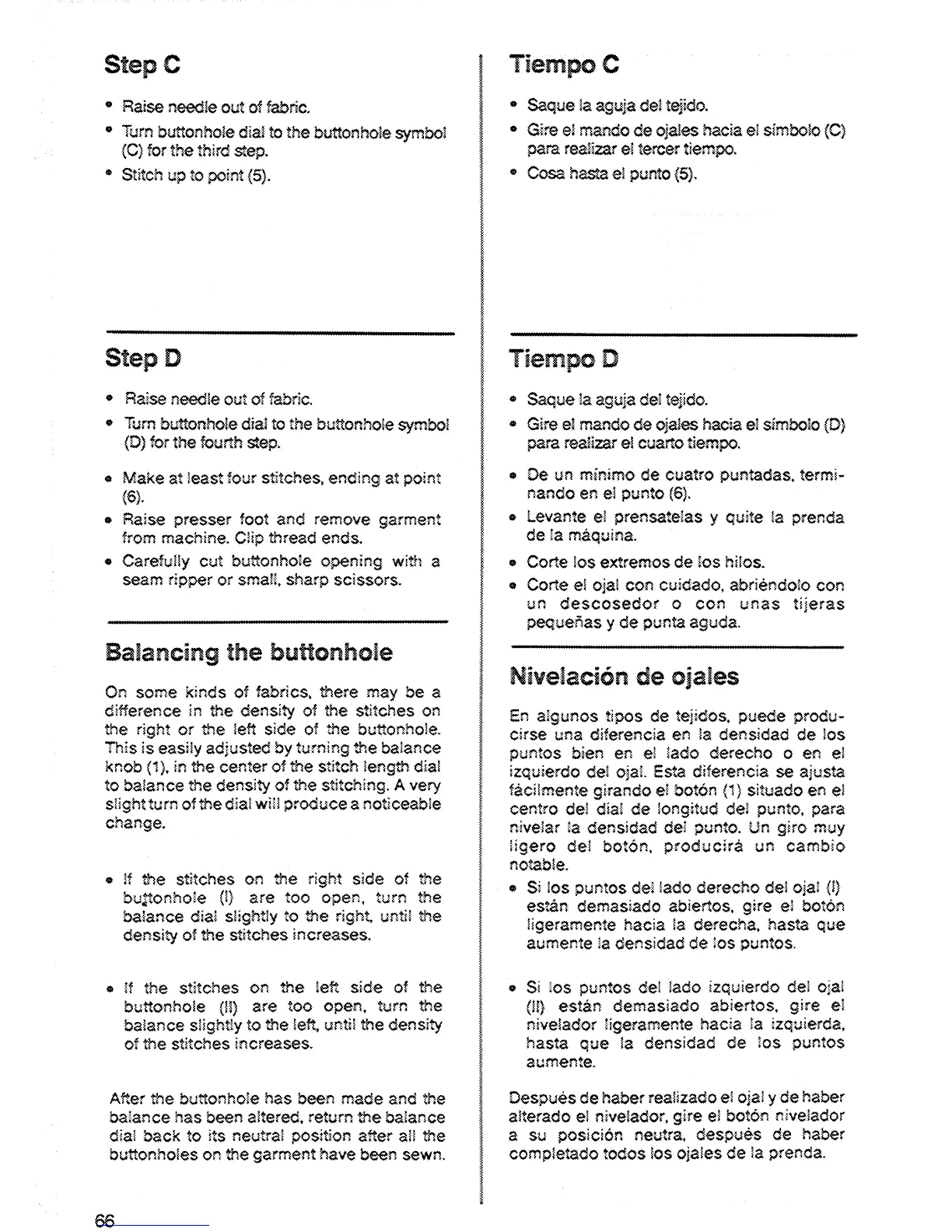 Singer 6215 - Completing and Adjusting Buttonholes; Step C: Sewing the Second Side; Step D: Finishing the Buttonhole; Balancing Buttonhole Density