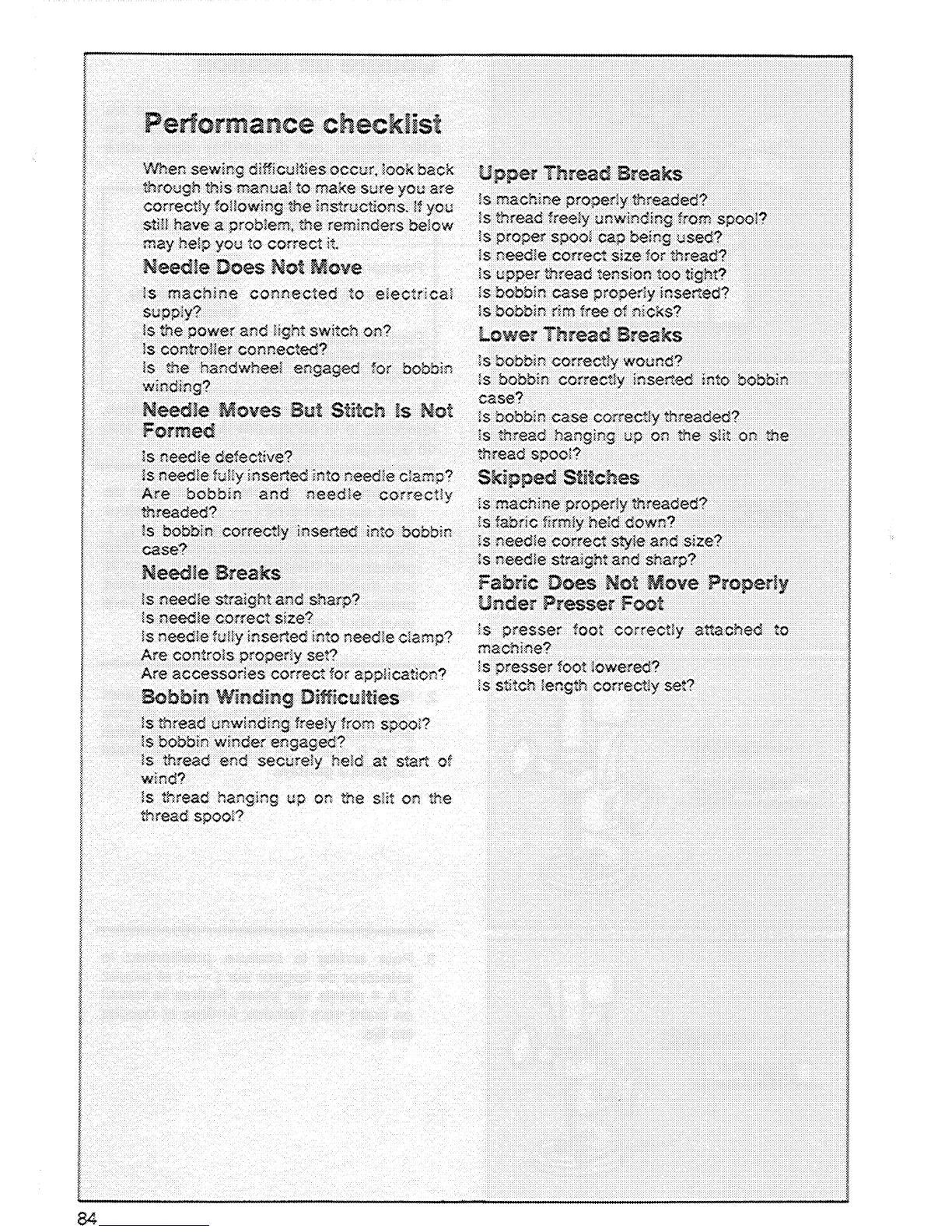 Singer 6215 - Troubleshooting and Performance Checklist; Needle Issues Checklist; Thread Issues Checklist; Stitch and Fabric Movement Issues