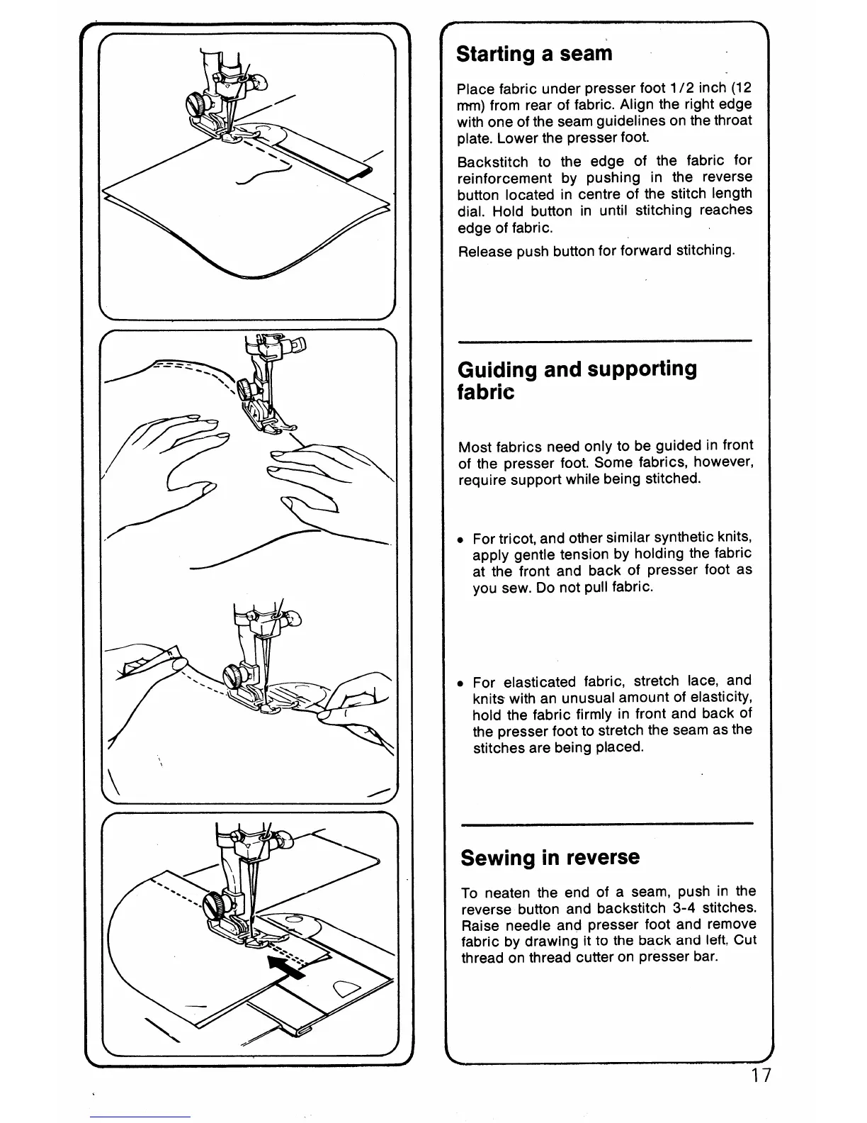 Singer 6217 - Starting a Seam; Guiding and Supporting Fabric; Sewing in Reverse