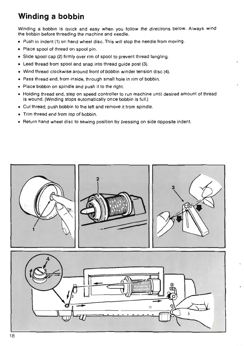 • Cut thread ; push bobbin to the left and remove it Irom spindle.