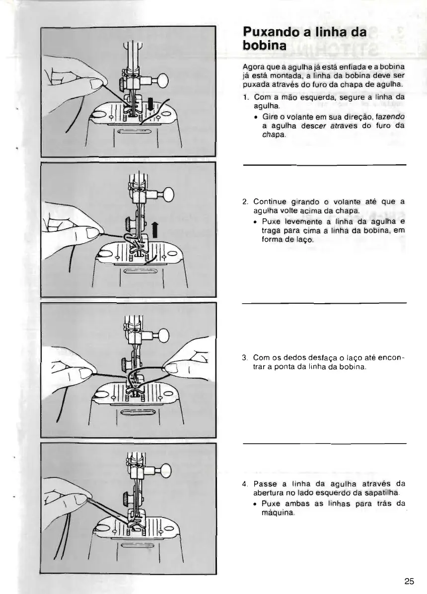 • Puxe levemente a linha da agulha e