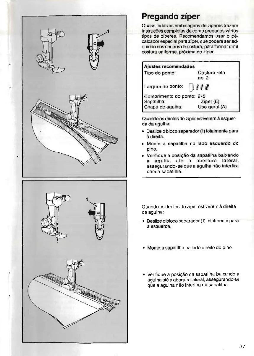 calcador especial parazíper, que poderá ser ad-