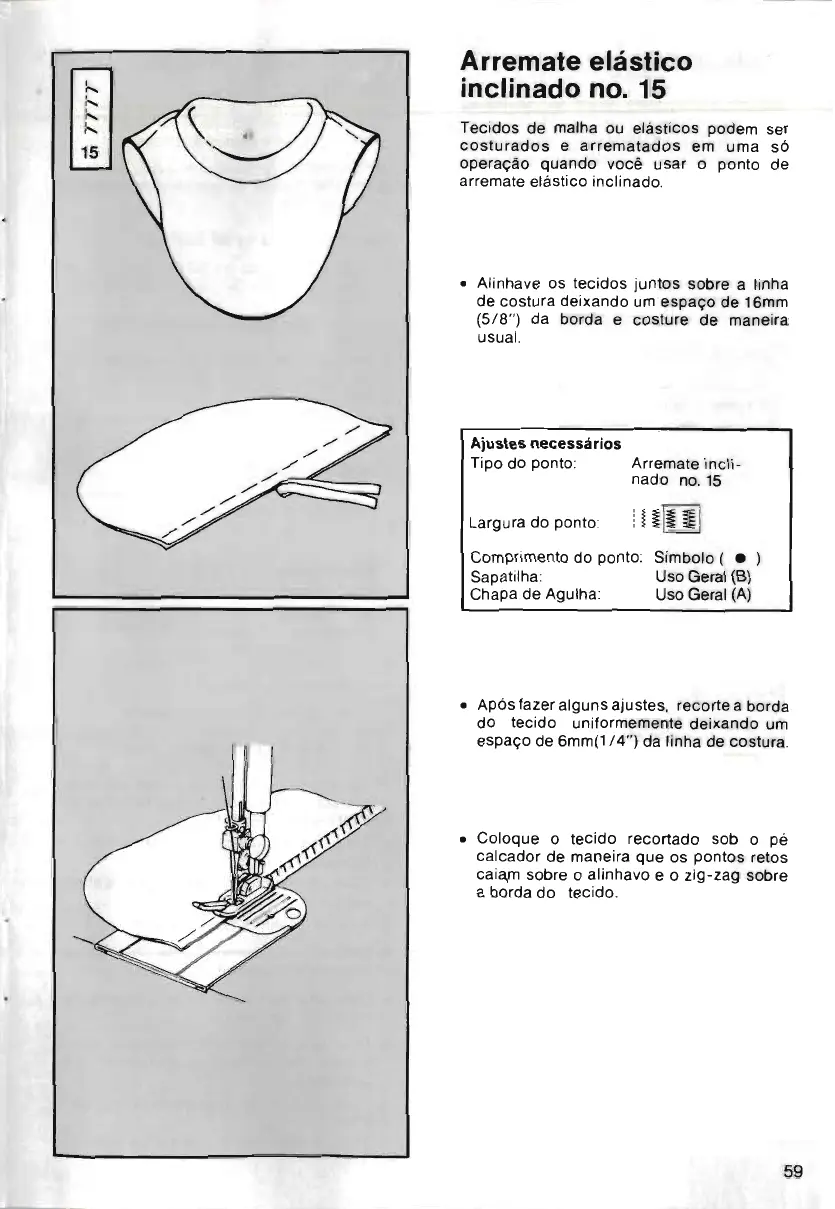• Coloque o tec ido recortado sob o pé