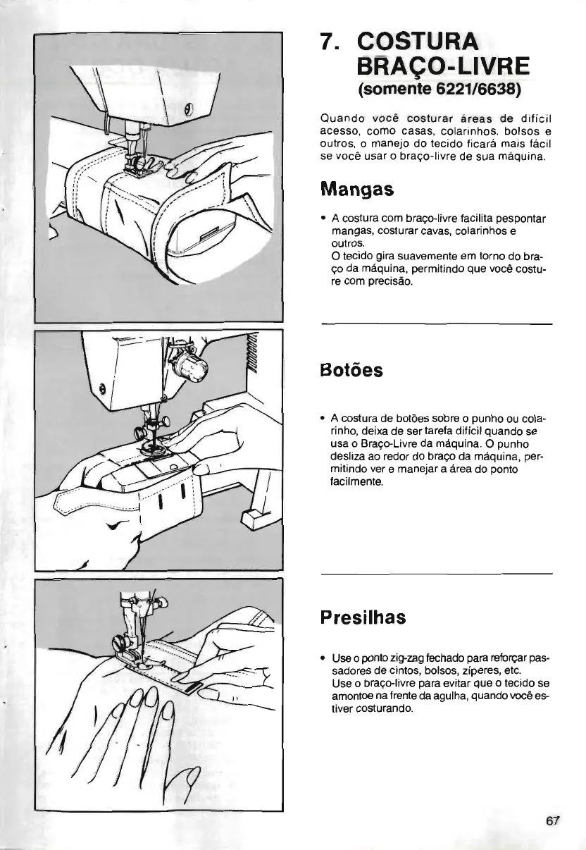 • A costura com braço-livre facilita pespontar