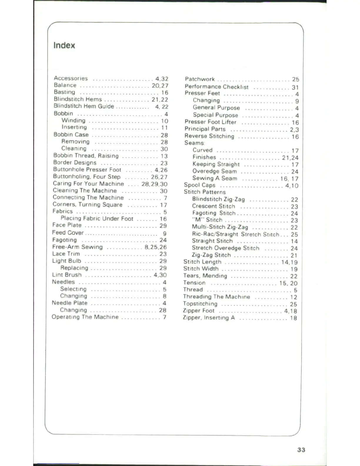 Singer 6233 - Index