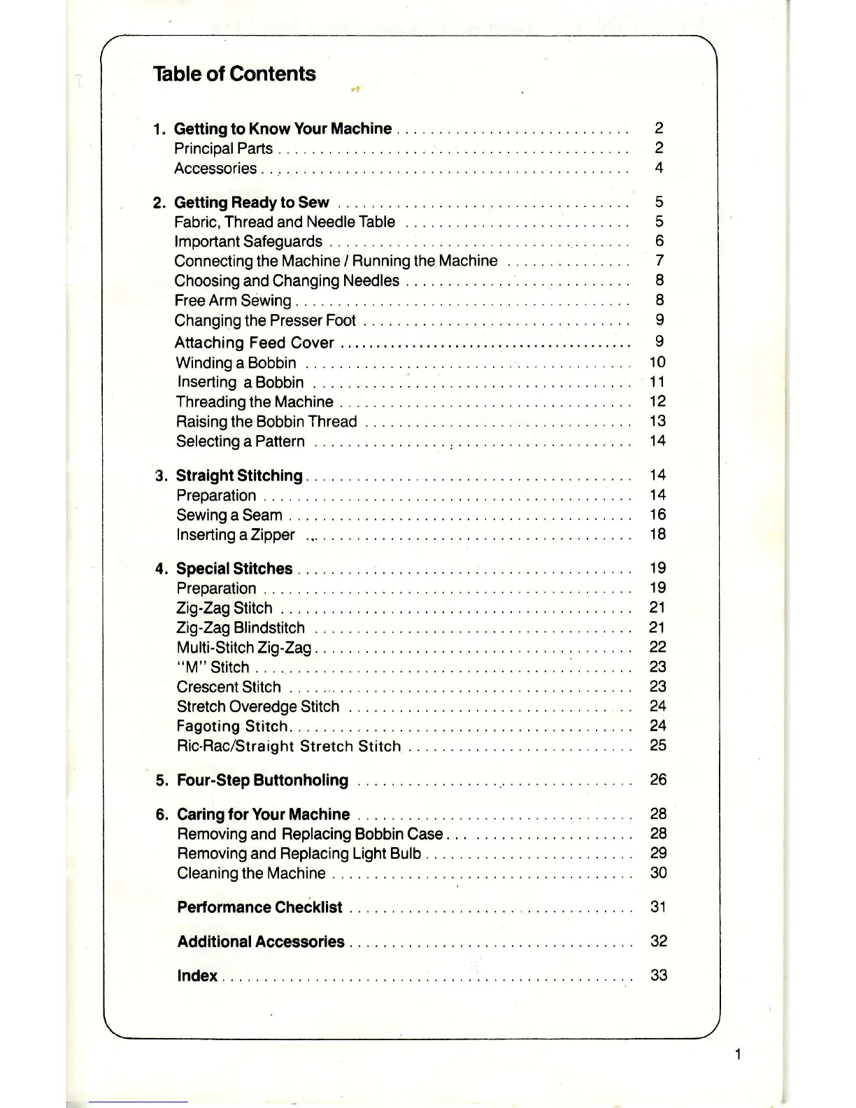 Singer 6233 - Default Chapter; Table of Contents