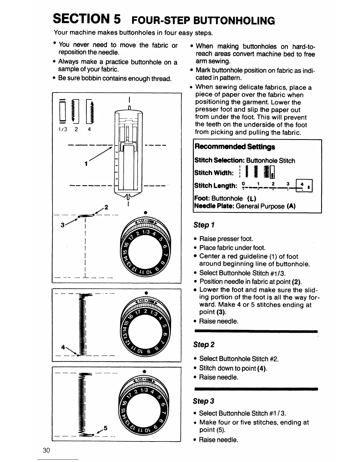 Singer 6234 - SECTION 5 FOUR-STEP BUTTONHOLING
