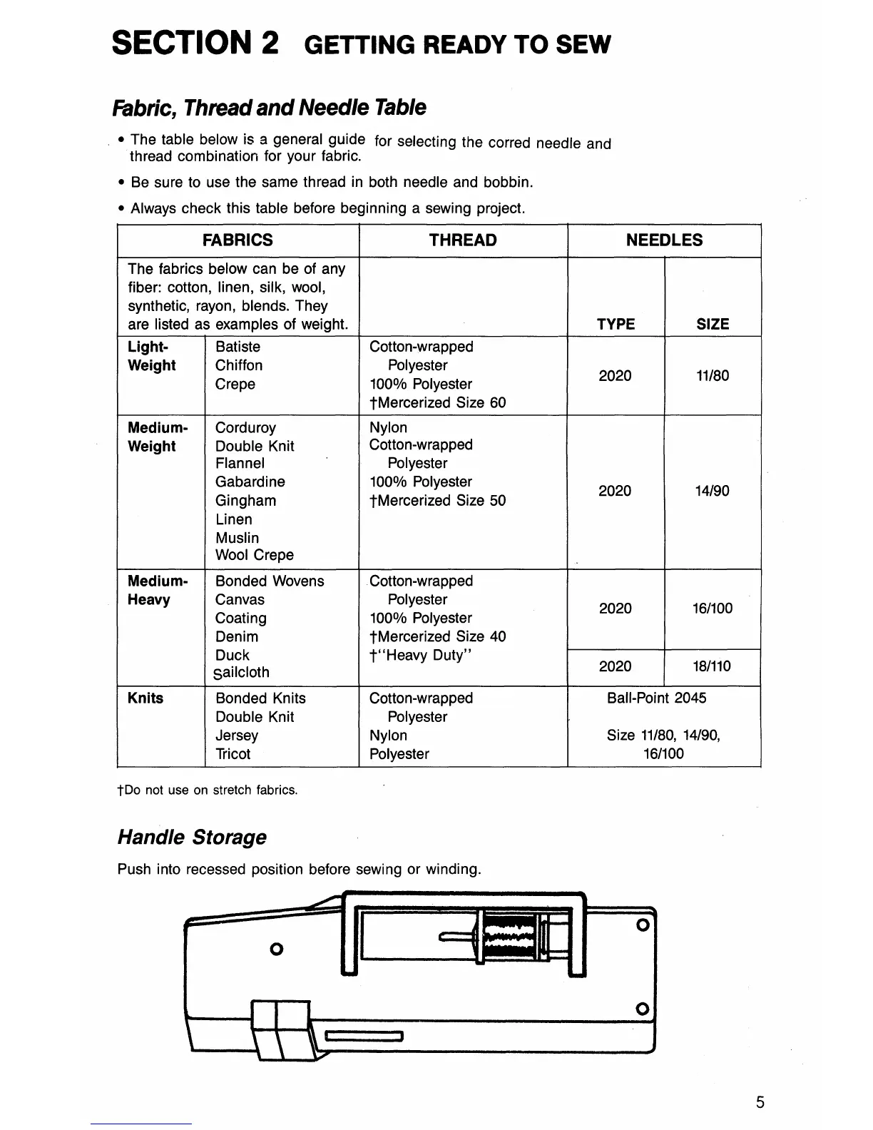 Singer 6234 - SECTION 2 GETTING READY TO SEW; Fabric, Thread and Needle Table