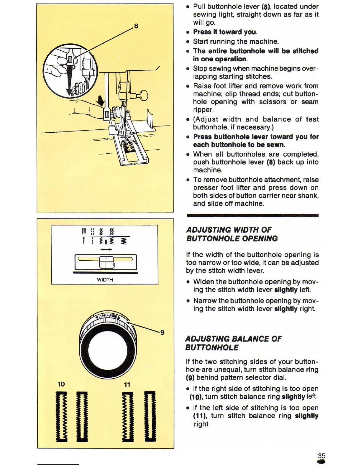 Singer 6235 - Adjusting Width of Buttonhole Opening; Adjusting Balance of Buttonhole