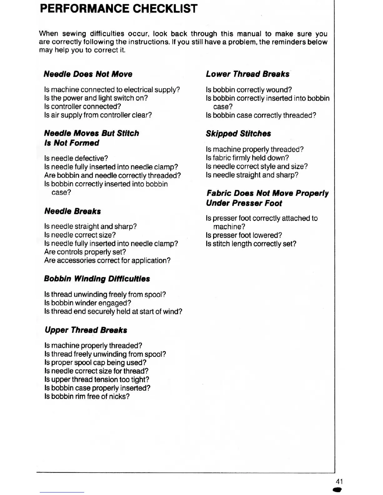 Singer 6235 - Performance Checklist