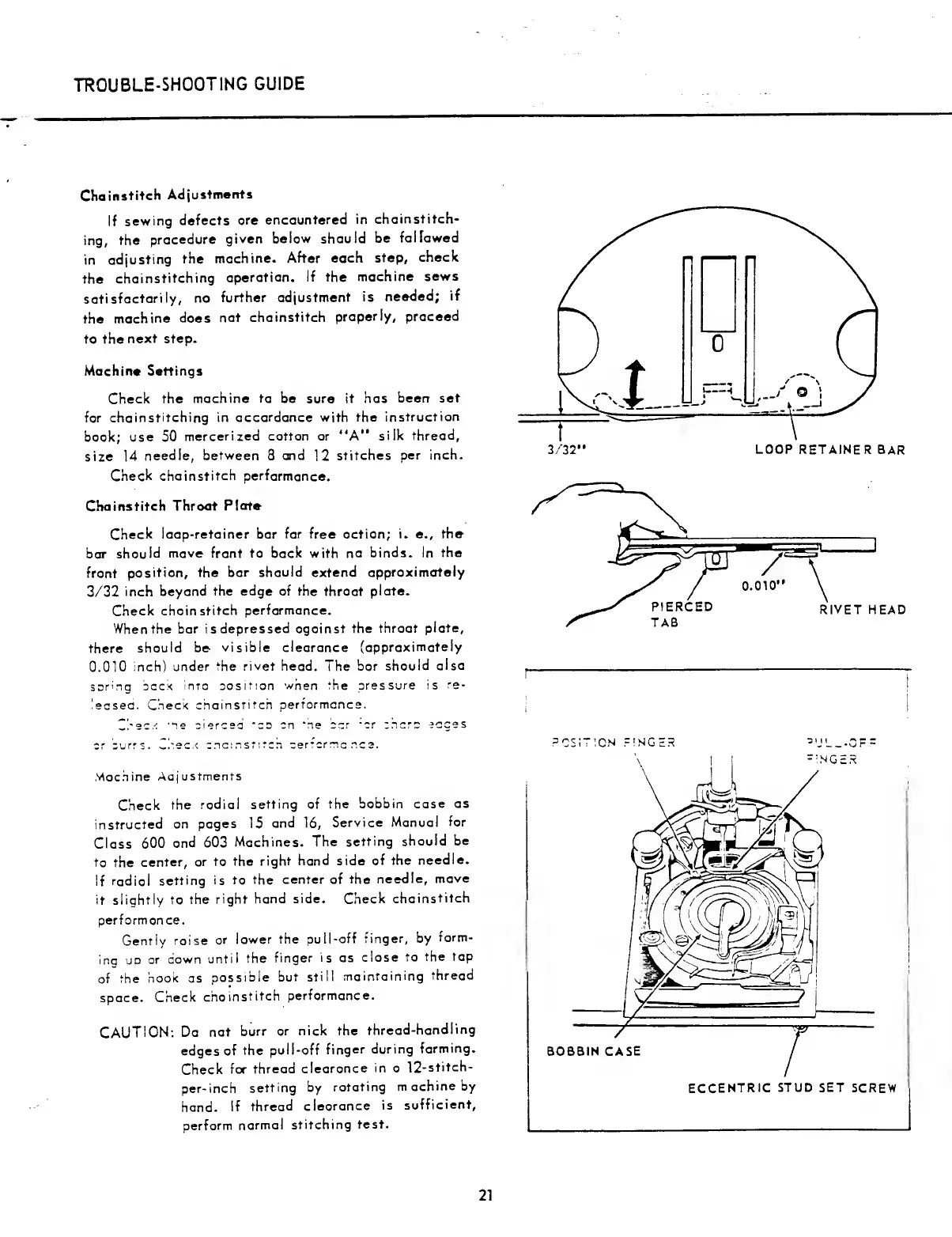 Singer 626 - Trouble-Shooting Guide; Chainstitch Adjustments; Machine Adjustments