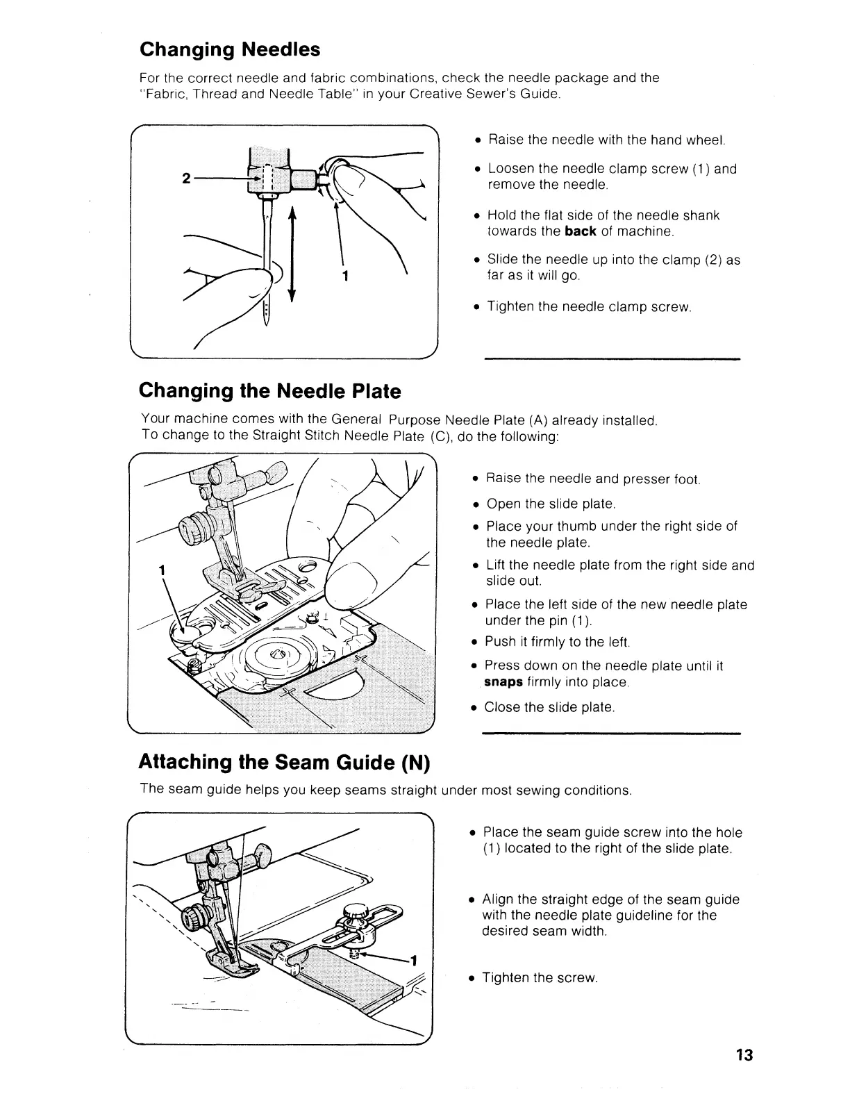 Singer 6267 - Changing Needles; Changing the Needle Plate; Attaching the Seam Guide (N)