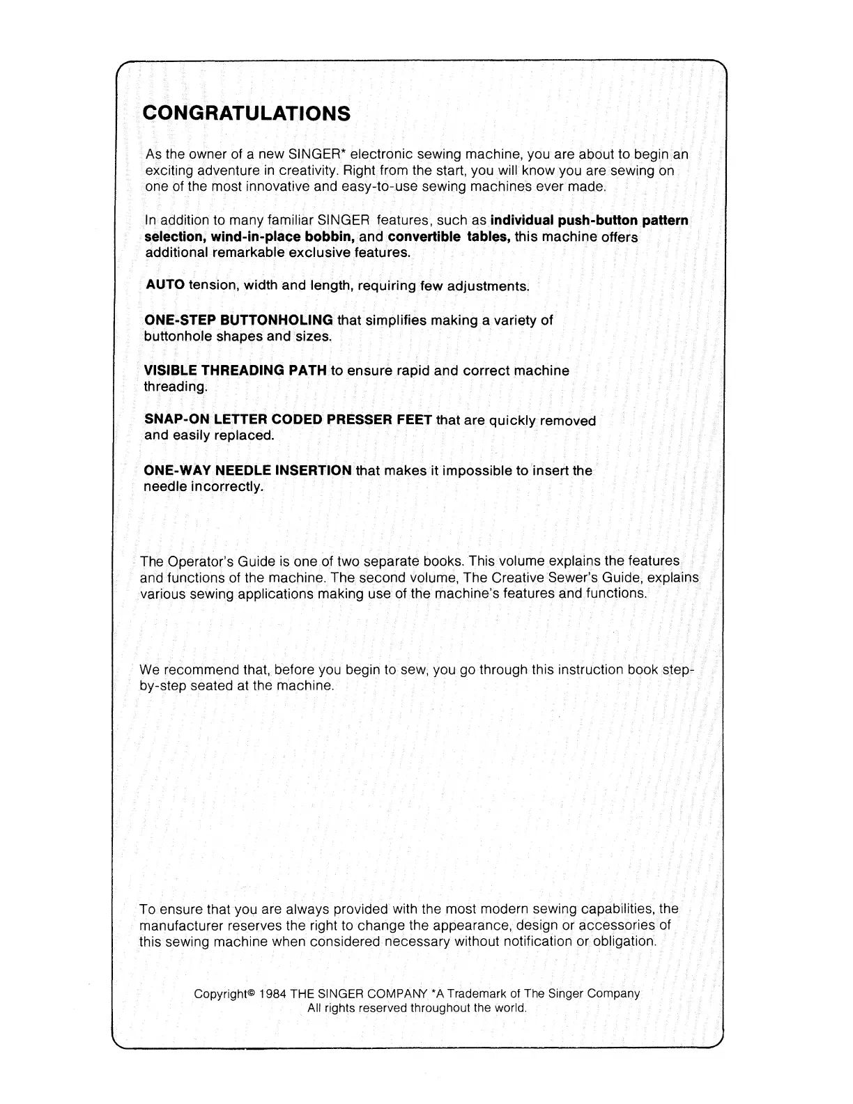 Singer 6267 - Introduction