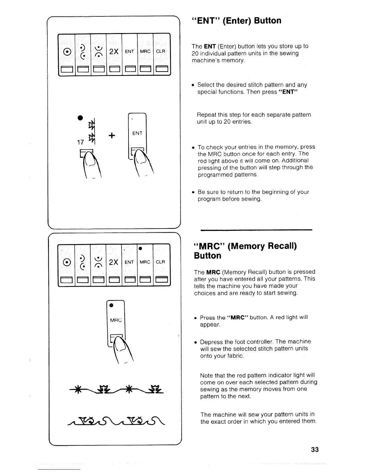 Singer 6268 - ENT (Enter) Button; MRC (Memory Recall) Button