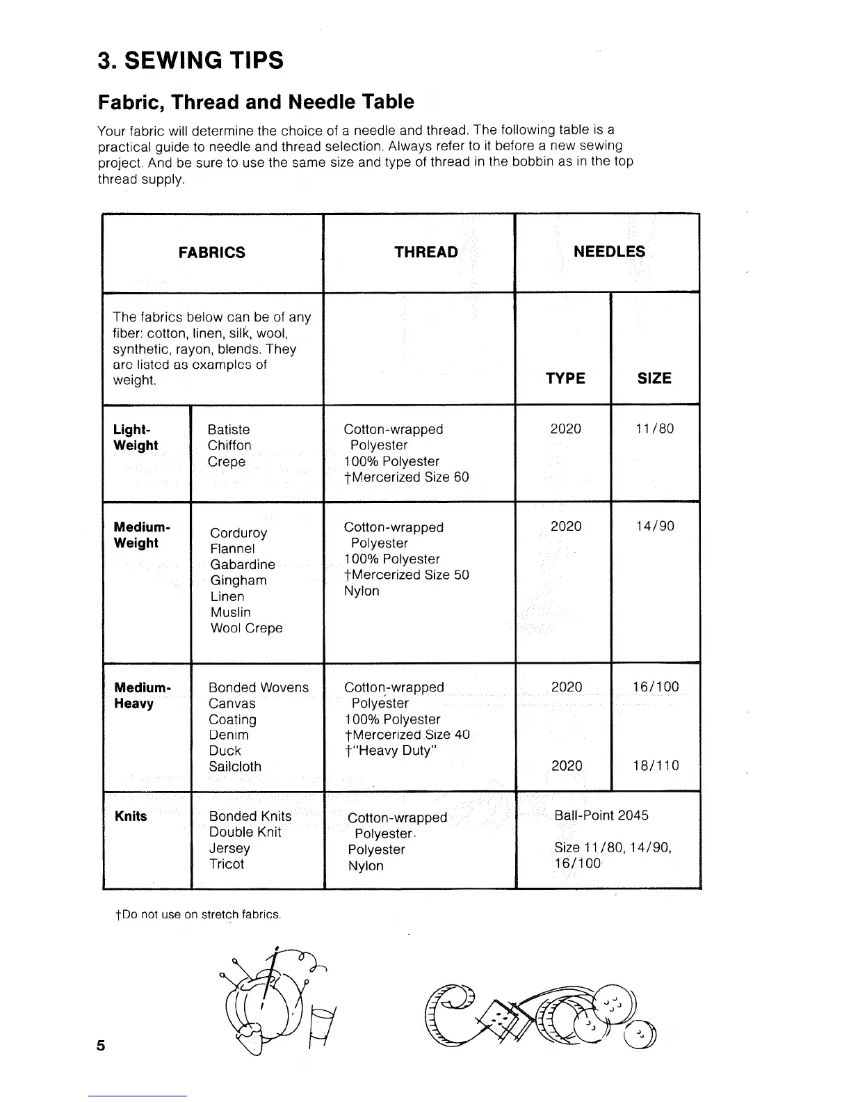 Singer 6268 - Sewing Tips; Fabric, Thread and Needle Table