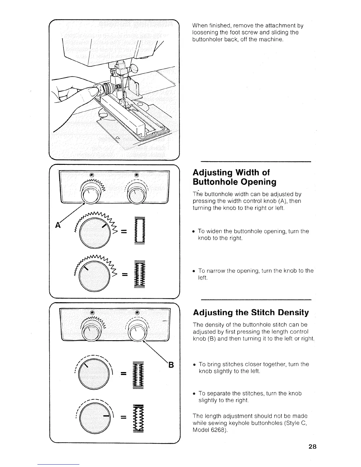 Singer 6268 - Adjusting Width of Buttonhole Opening; Adjusting the Stitch Density