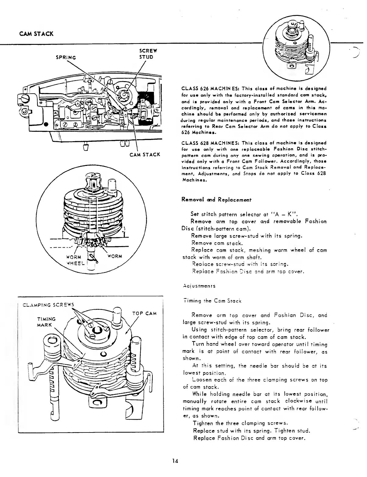 Singer 628 - Cam Stack and Selectors; Removal and Replacement; Timing the Cam Stack