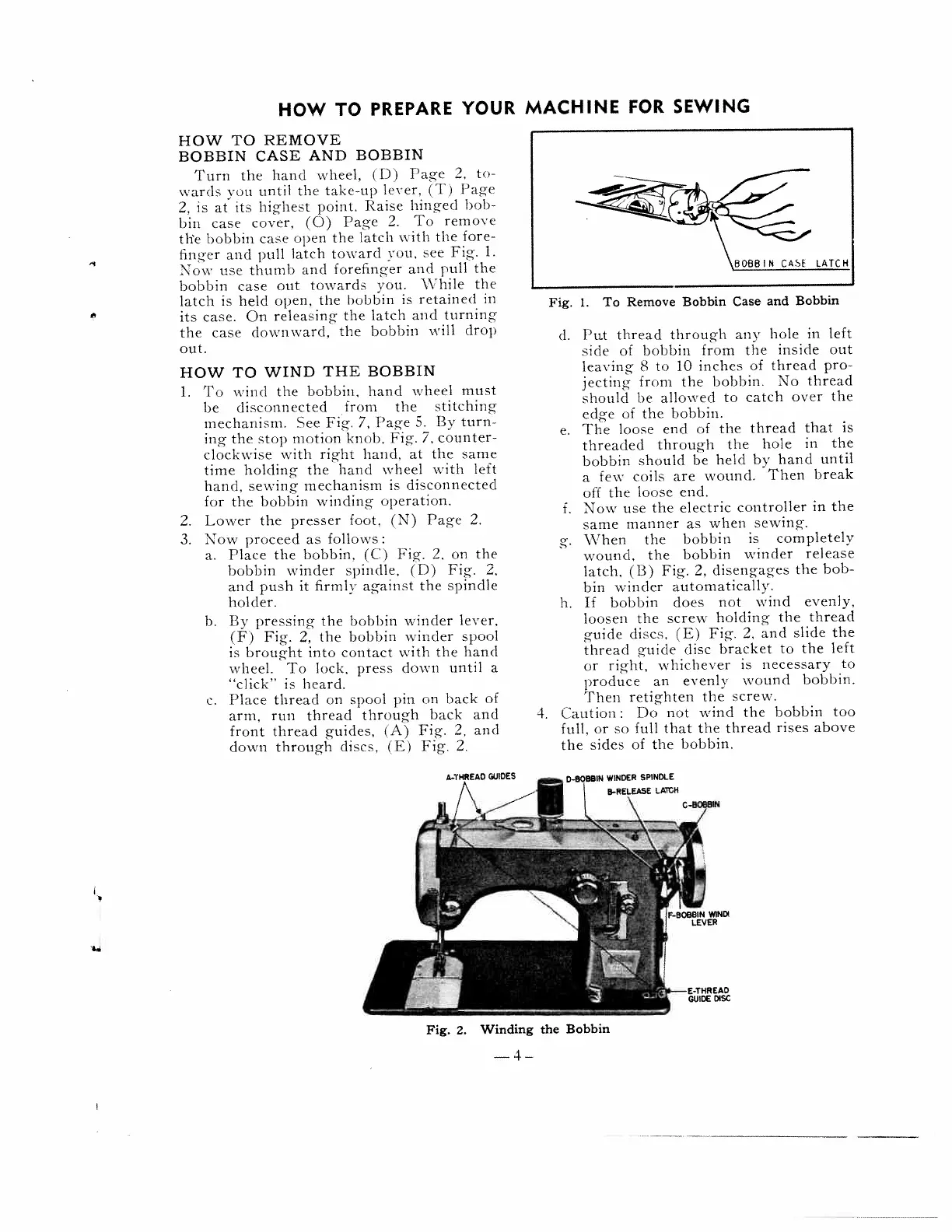 Singer 630 - Machine Preparation for Sewing; Removing Bobbin Case and Bobbin; Winding the Bobbin Correctly