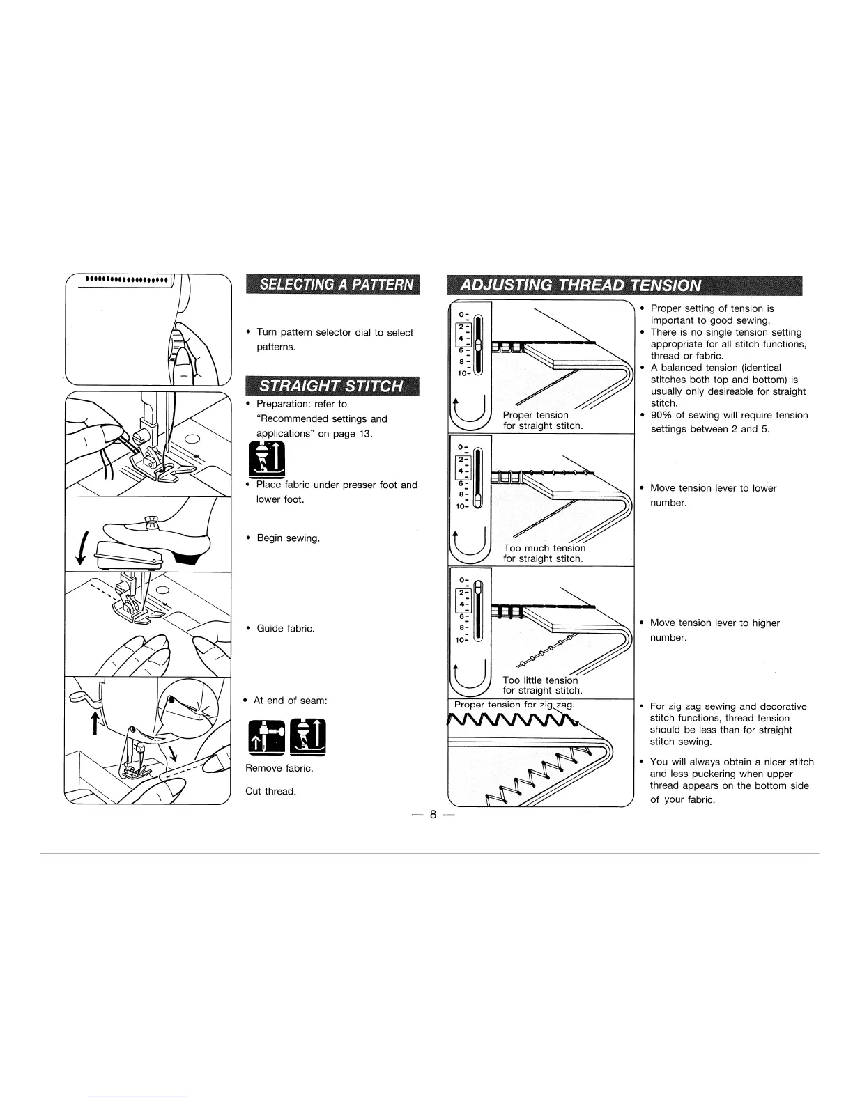 Singer 6408 - Stitch Pattern and Tension Adjustment; Adjusting Thread Tension for Stitches