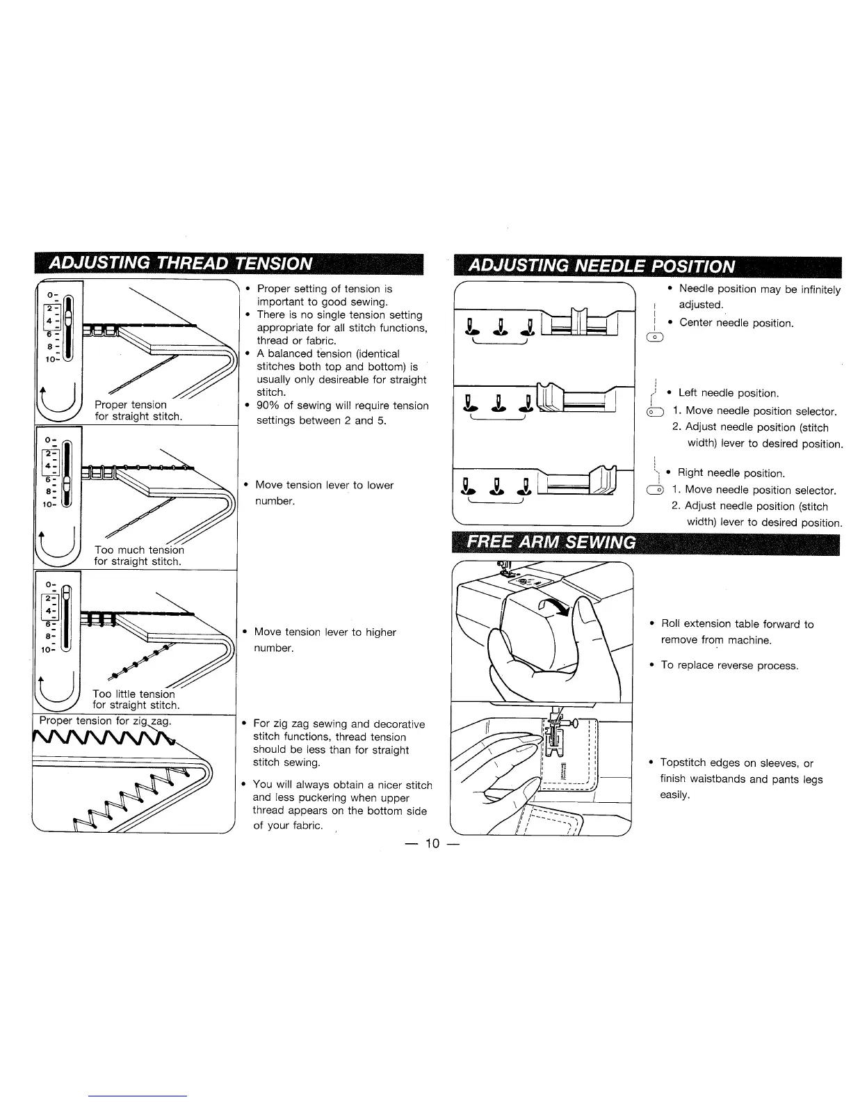 Singer 6423 - ADJUSTING THREAD TENSION; Proper tension for straight stitch.; Too much tension for straight stitch.; Too little tension for straight stitch.