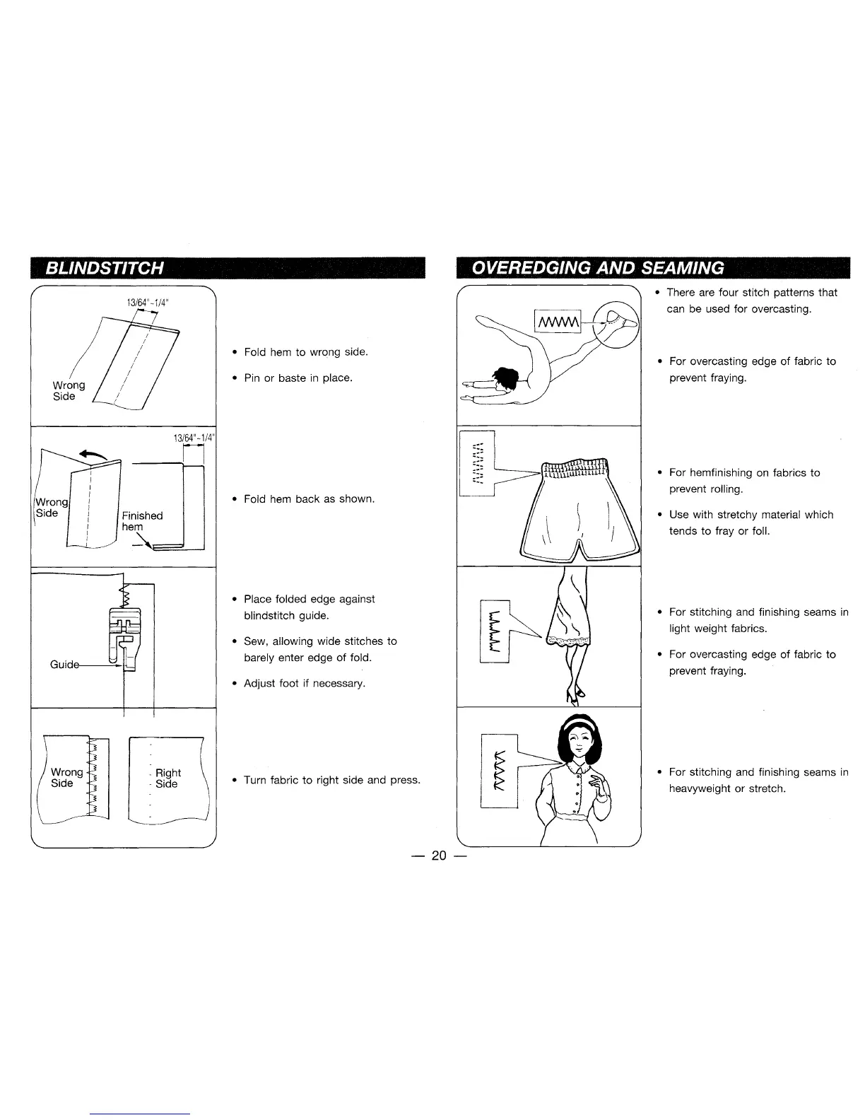 Singer 6423 - BLINDSTITCH; Fold hem to wrong side.; Pin or baste in place.; Fold hem back as shown.