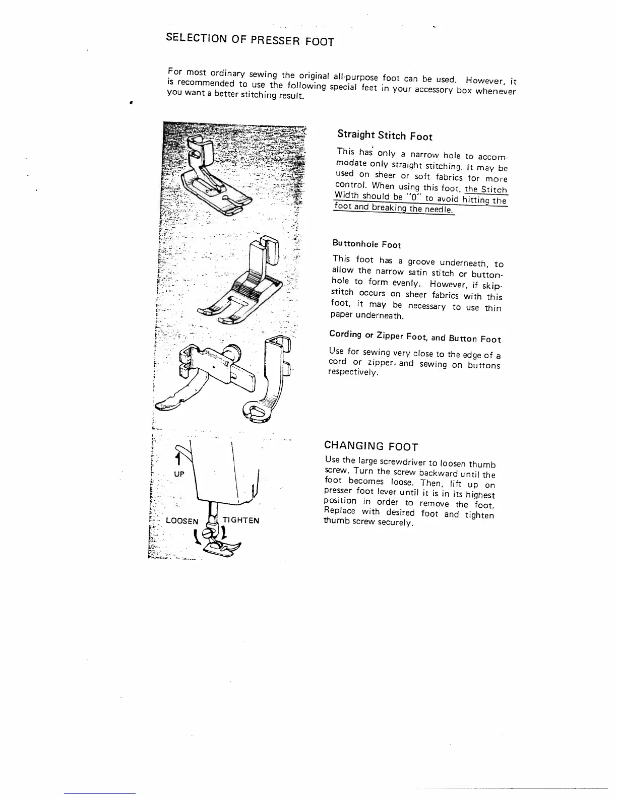 Singer 645 - Presser Foot Selection and Changing