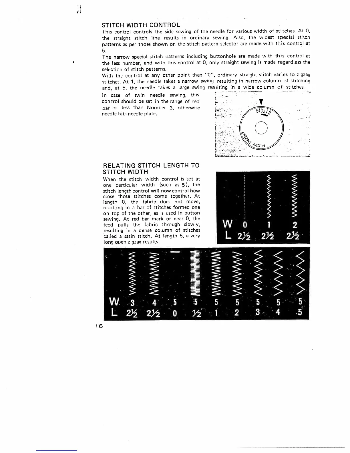 Singer 645 - Stitch Width Control; Relating Stitch Length to Stitch Width