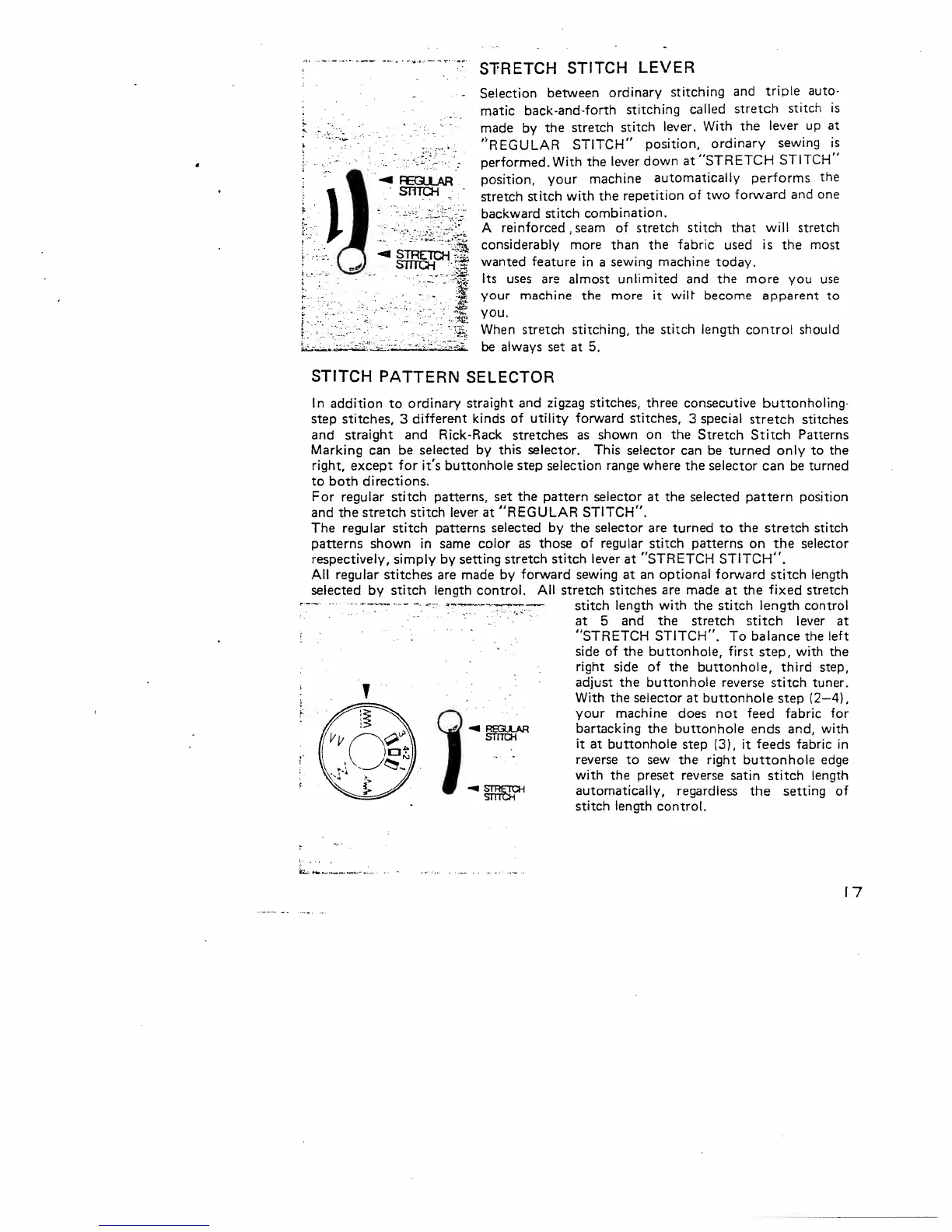 Singer 645 - Stretch Stitch Lever and Pattern Selector