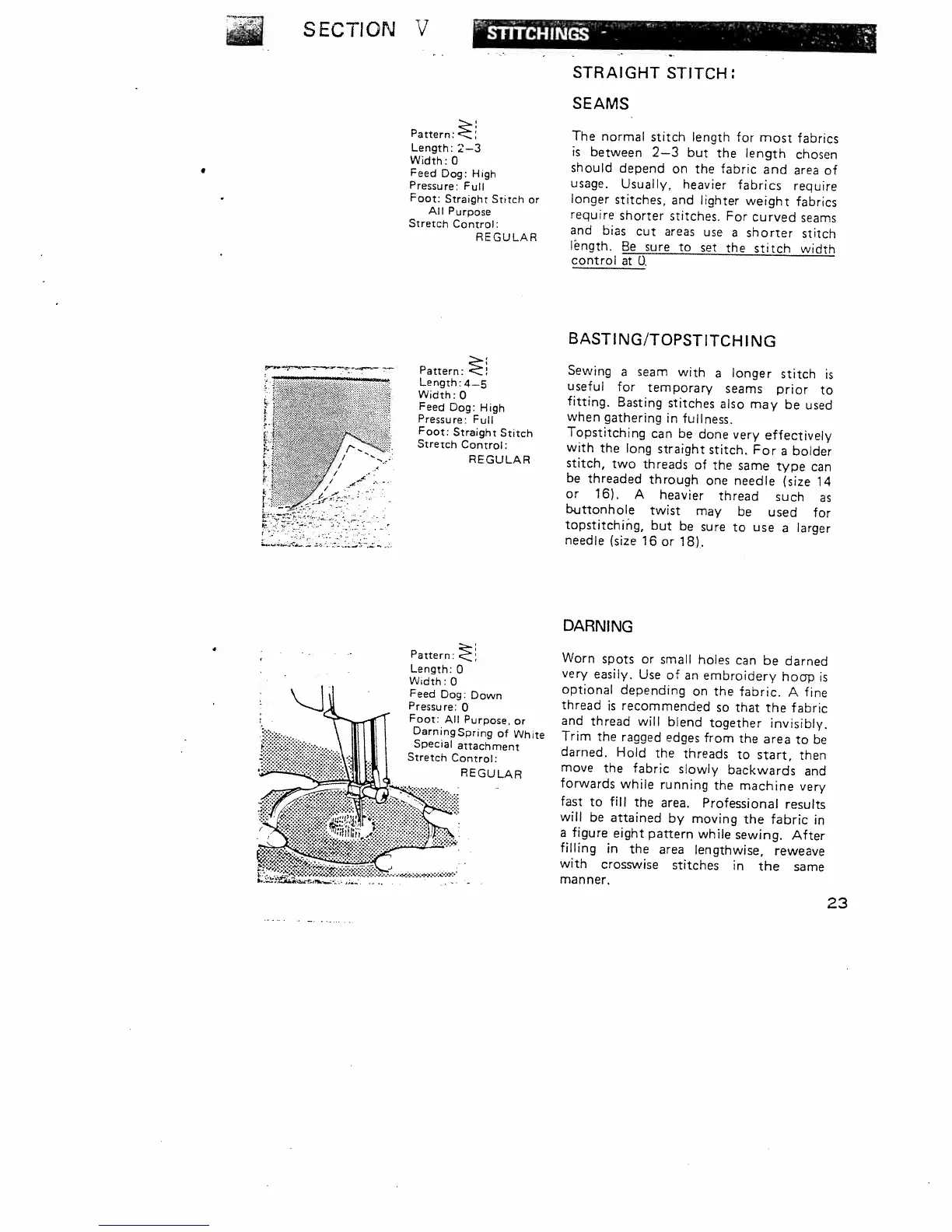 Singer 645 - Stitch Types and Applications; Straight Stitch Seams and Variations; Darning, Zippers, and Cording