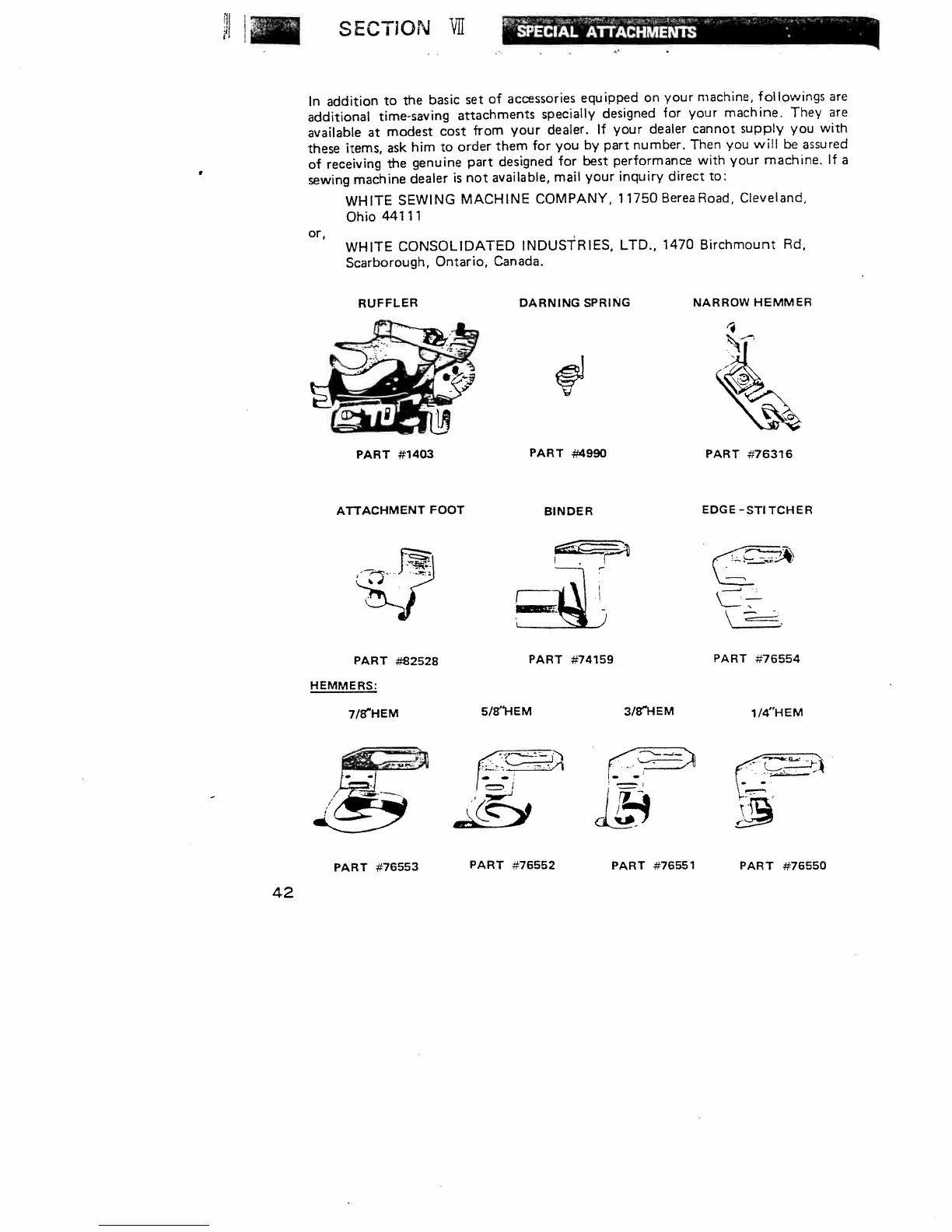 Singer 645 - Special Attachments and Accessories; Attachment Foot and Edgestitcher