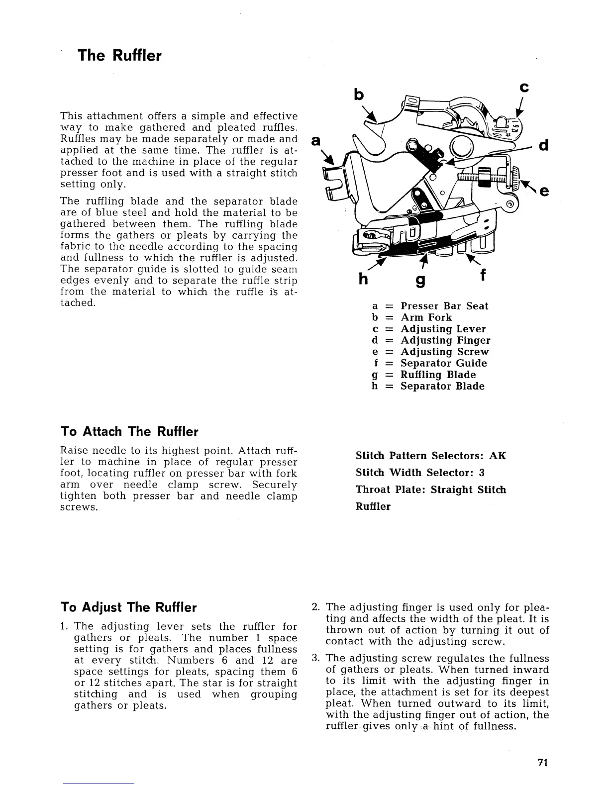 Singer 650 - The Ruffler; To Attach the Ruffler; To Adjust the Ruffler