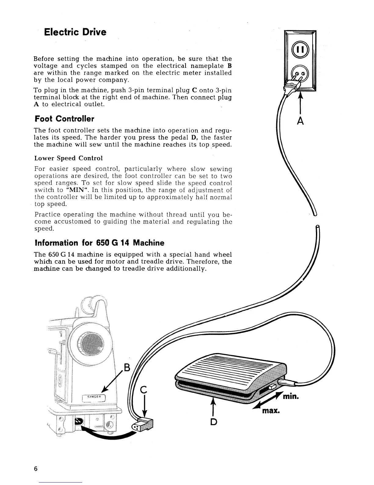 Singer 650 - Electric Drive; Foot Controller; Information for 650 G 14 Machine