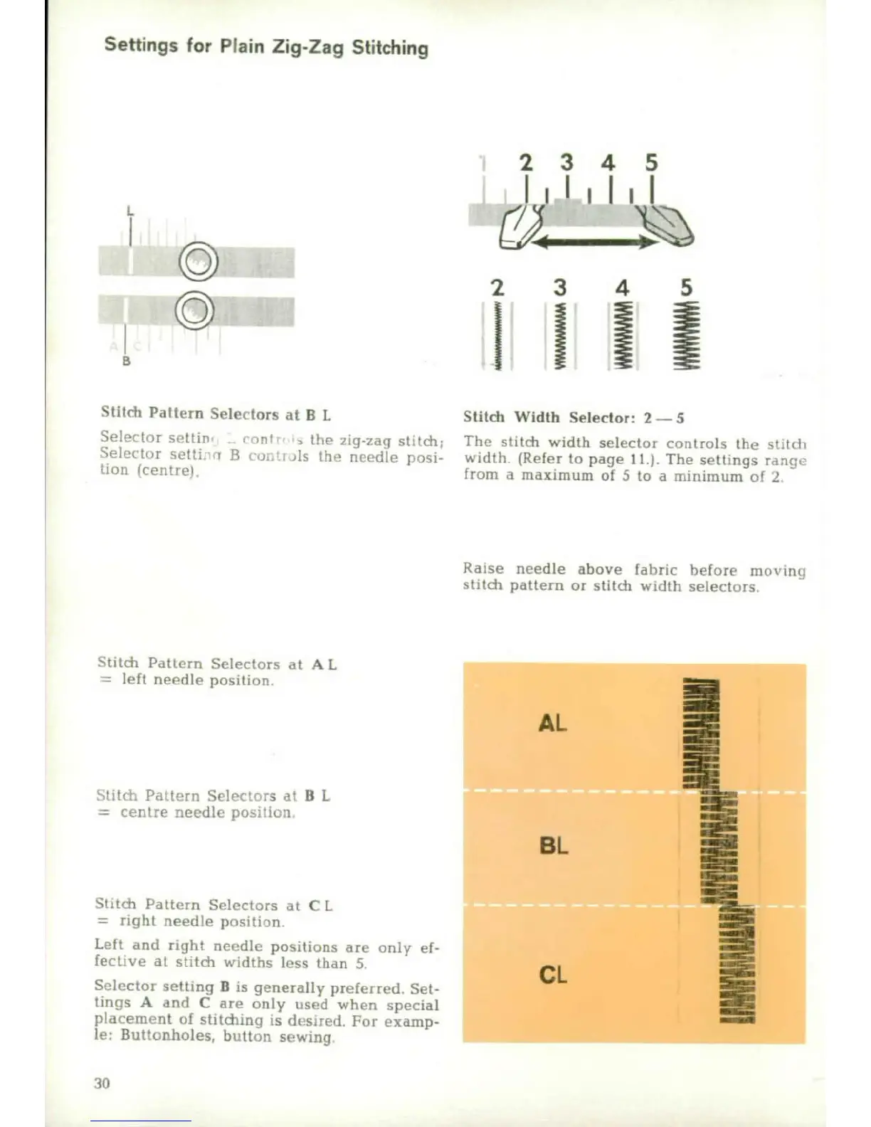 Singer 650 - Plain Zig-Zag Stitch Settings; Stitch Pattern Selector Settings for Zig-Zag; Stitch Width Selector for Zig-Zag