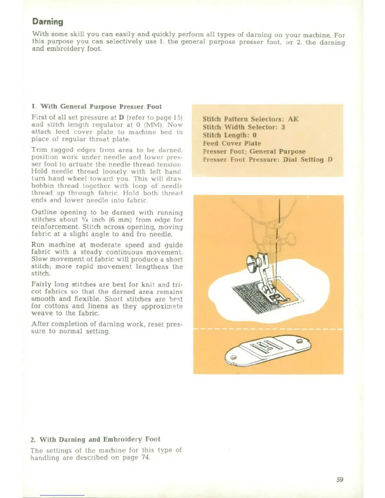 Singer 650 - Performing Darning; Darning with General Purpose Foot; Darning with Darning;Embroidery Foot