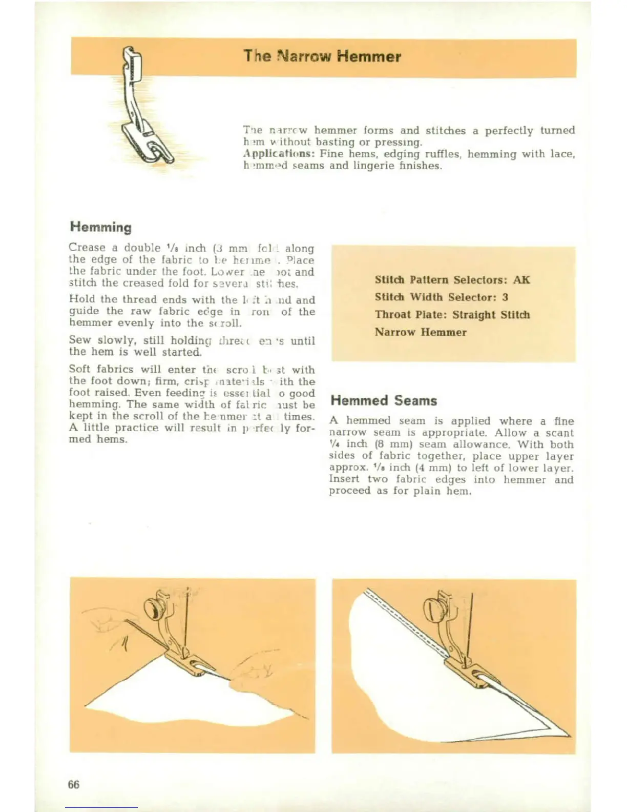 Singer 650 - Using the Narrow Hemmer; Hemming with the Narrow Hemmer; Decorative Hems with Zig-Zag; Hemming with Lace using Narrow Hemmer