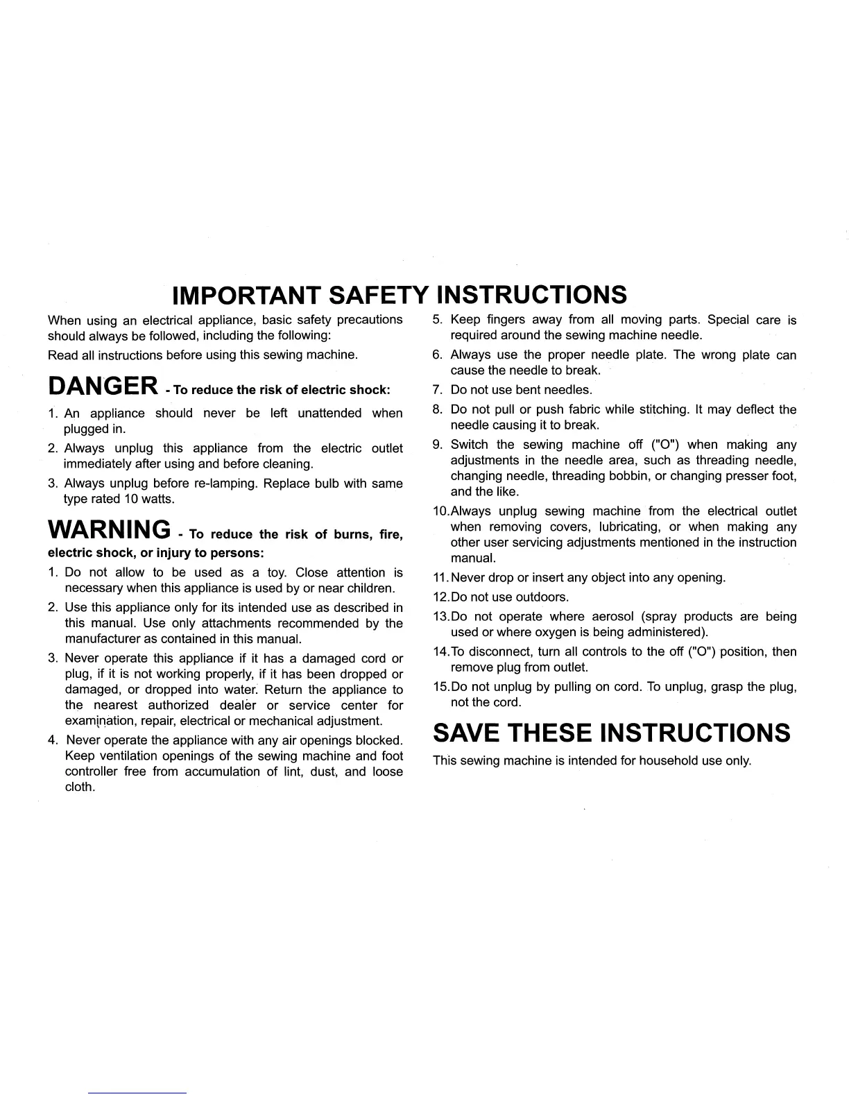 Singer 6510 - Important Safety Instructions