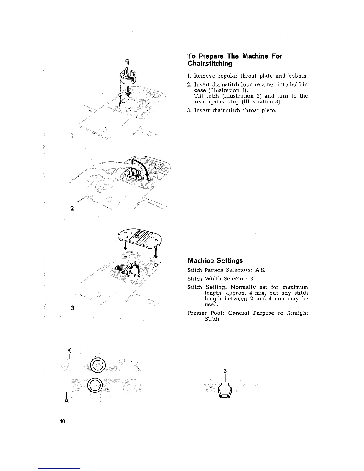 Singer 655 - To Prepare the Machine for Chainstitching; Machine Settings