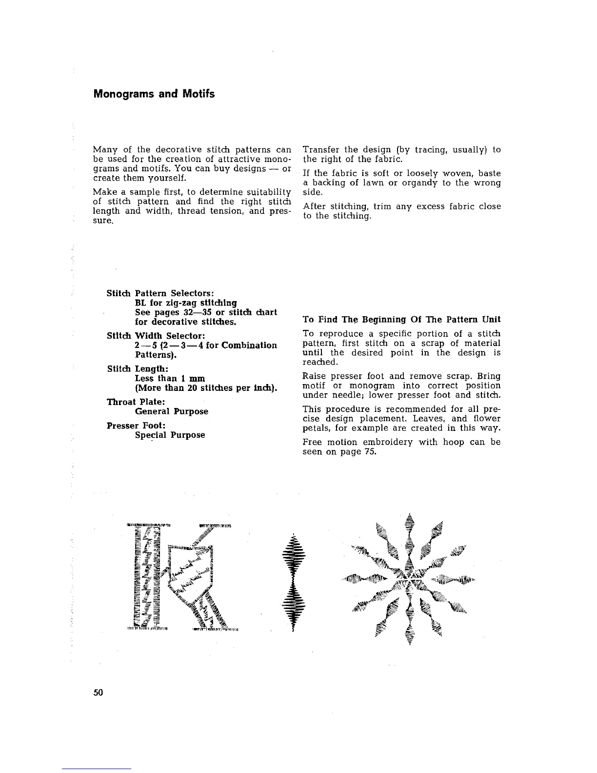 Singer 655 - Monograms and Motifs; To Find the Beginning of the Pattern Unit