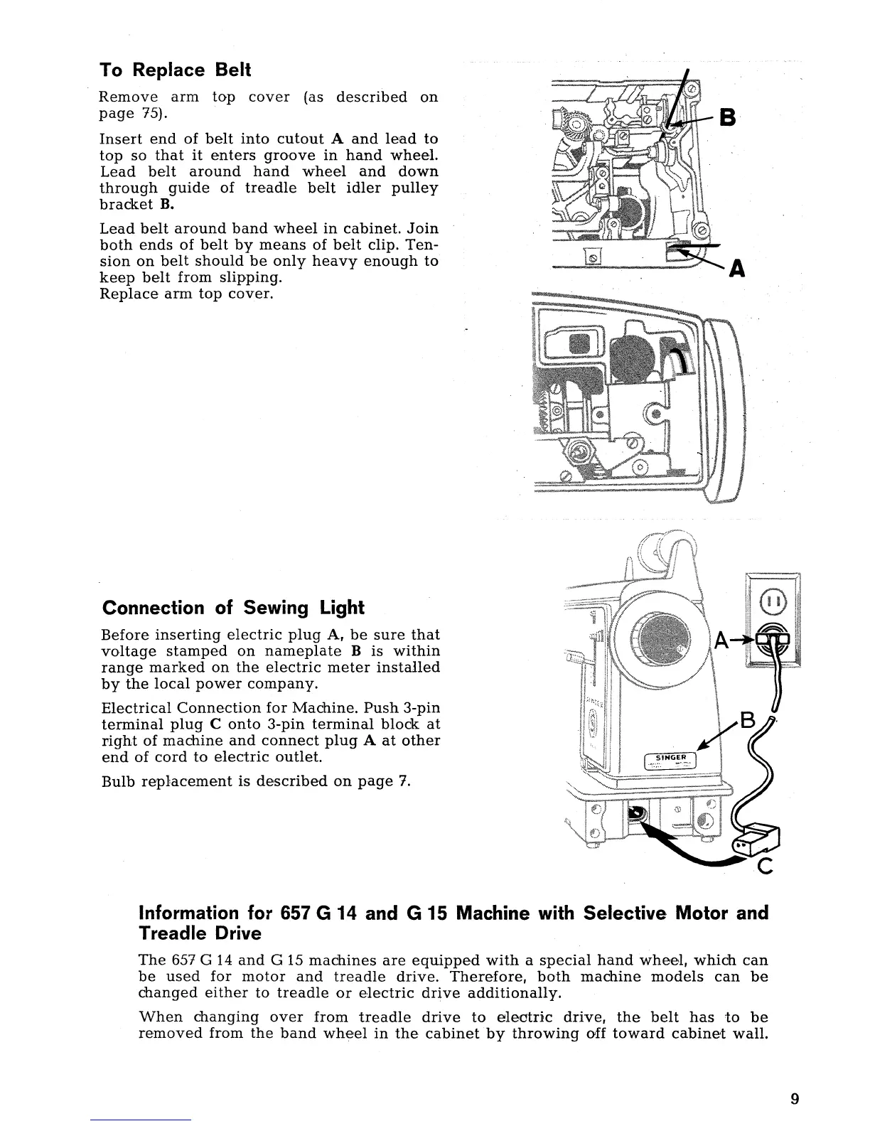 Singer 657 - To Replace Belt; Connection of Sewing Light