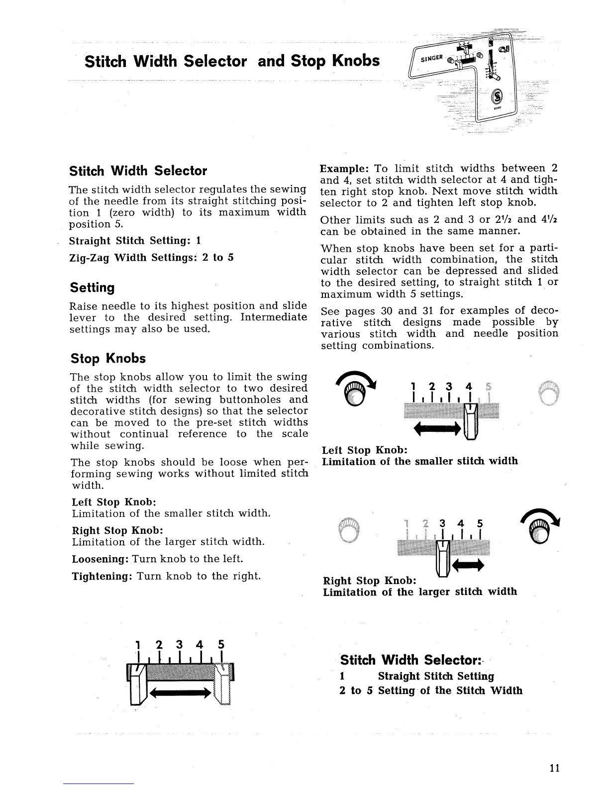 Singer 657 - Stitch Width Selector; Stop Knobs