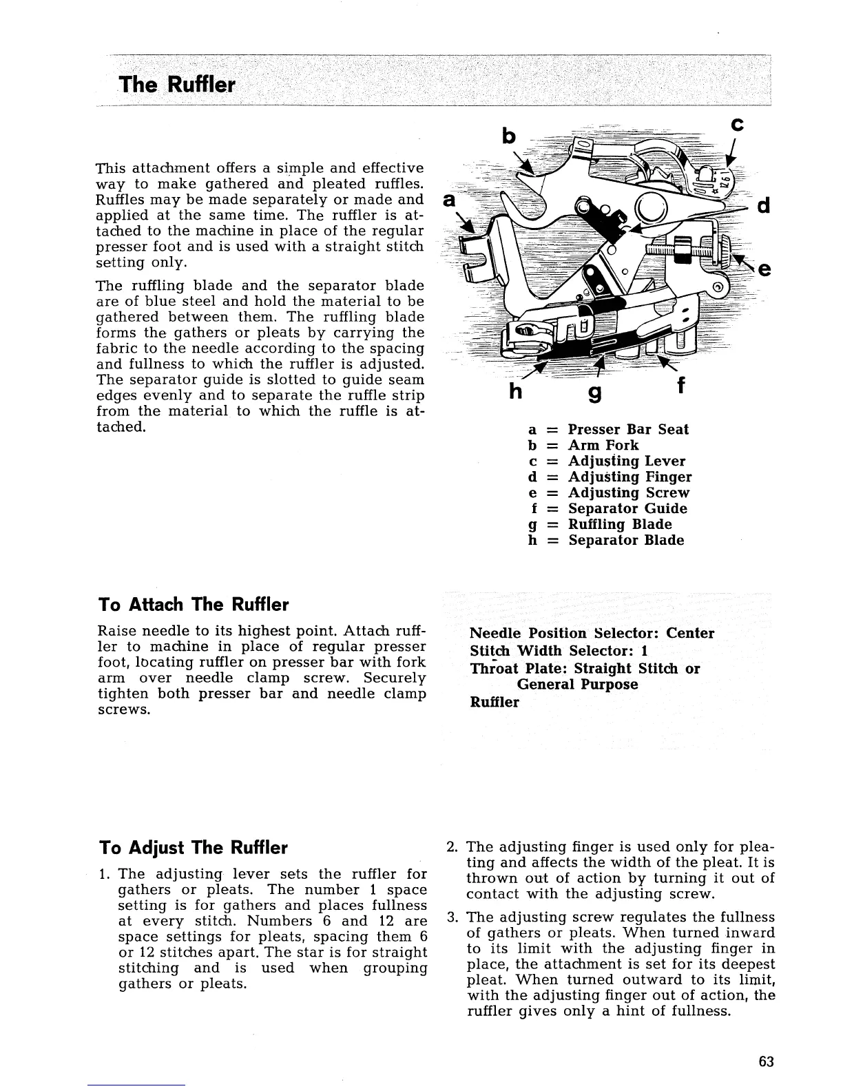 Singer 657 - The Ruffler; To Attach the Ruffler; To Adjust the Ruffler
