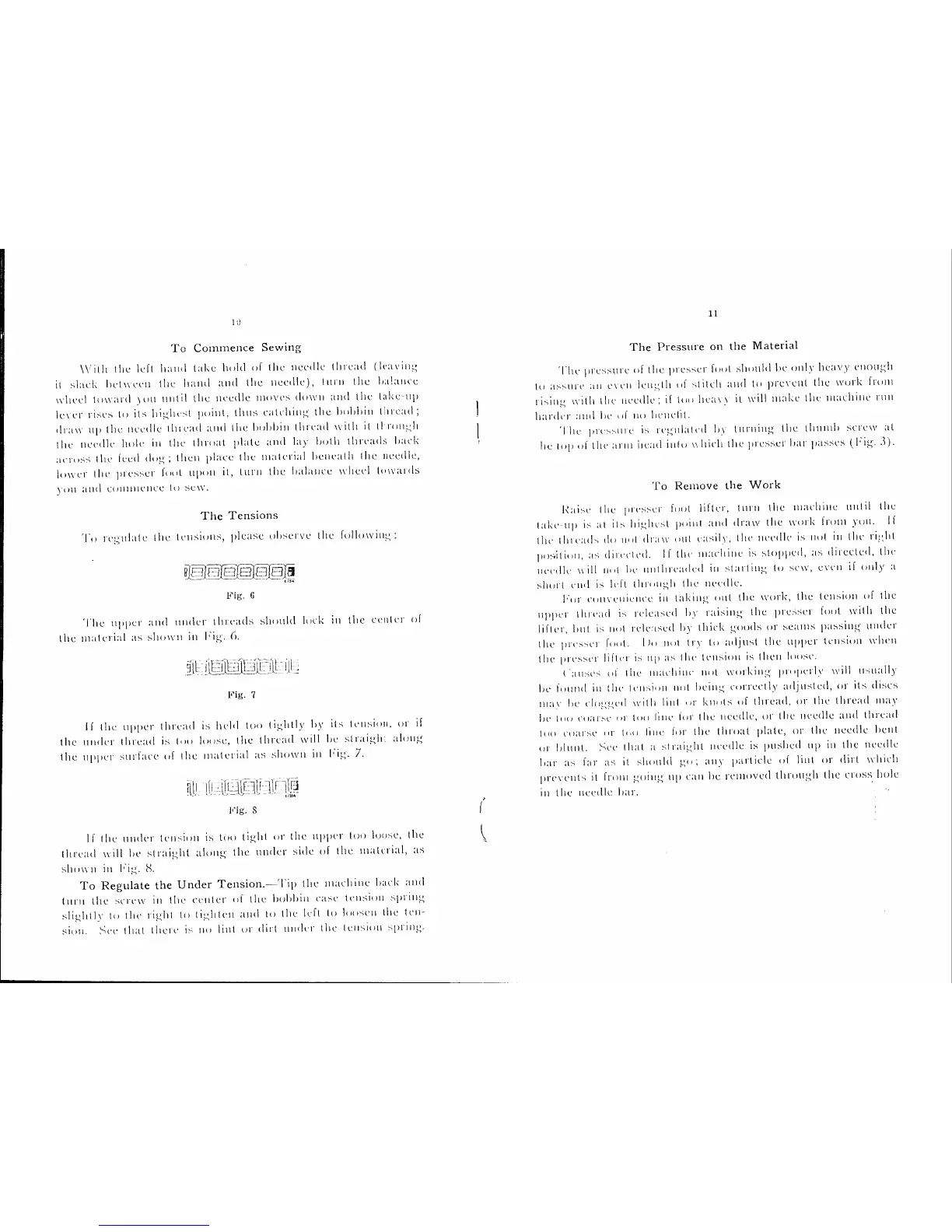 Singer 65W - To Commence Sewing; The Tensions; To Regulate the Under Tension; The Pressure on the Material