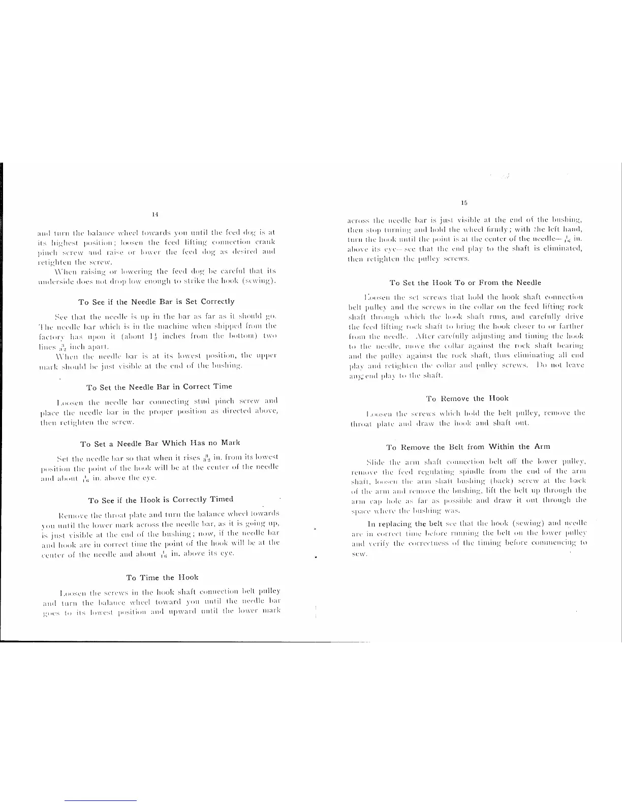 Singer 65W - To See if the Needle Bar is Set Correctly; To Set the Needle Bar in Correct Time; To Set a Needle Bar Which Has no Mark; To See if the Hook is Correctly Timed