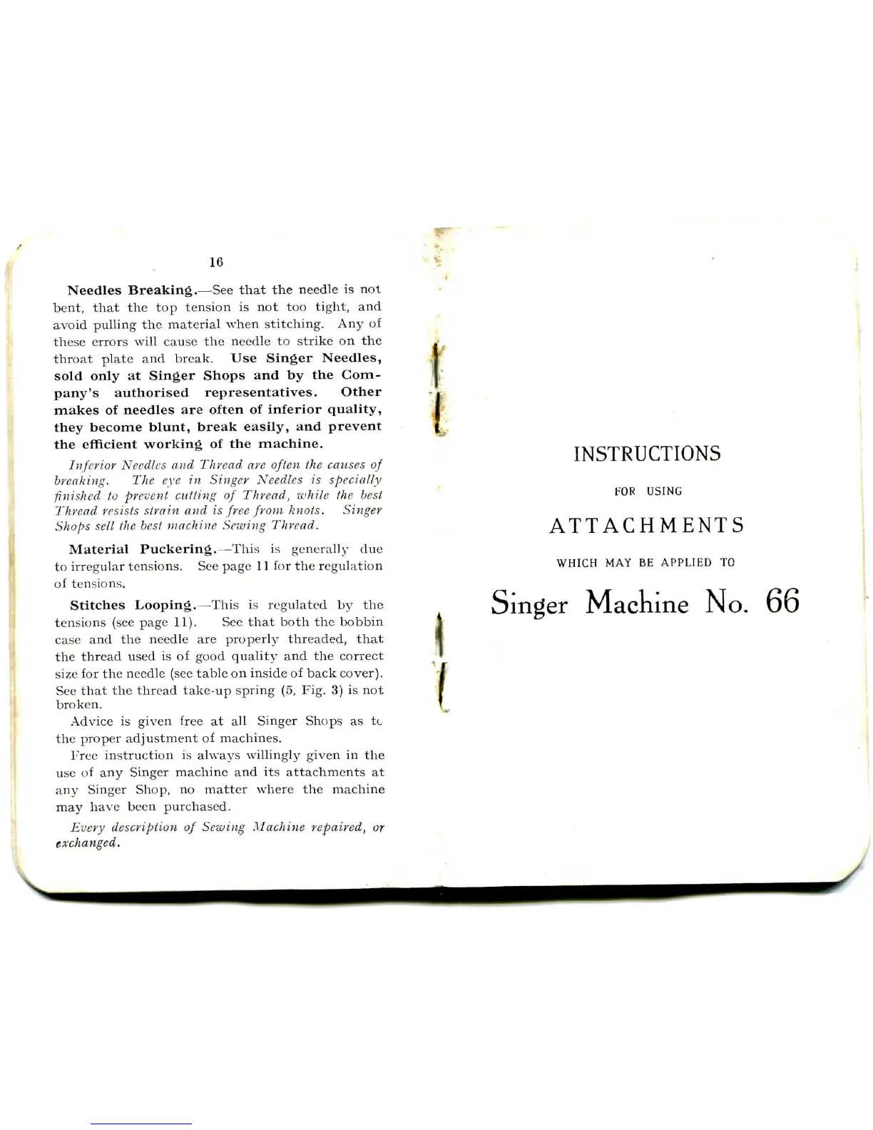 Singer 66 - Needle Breakage Causes; Fixing Looping Stitches